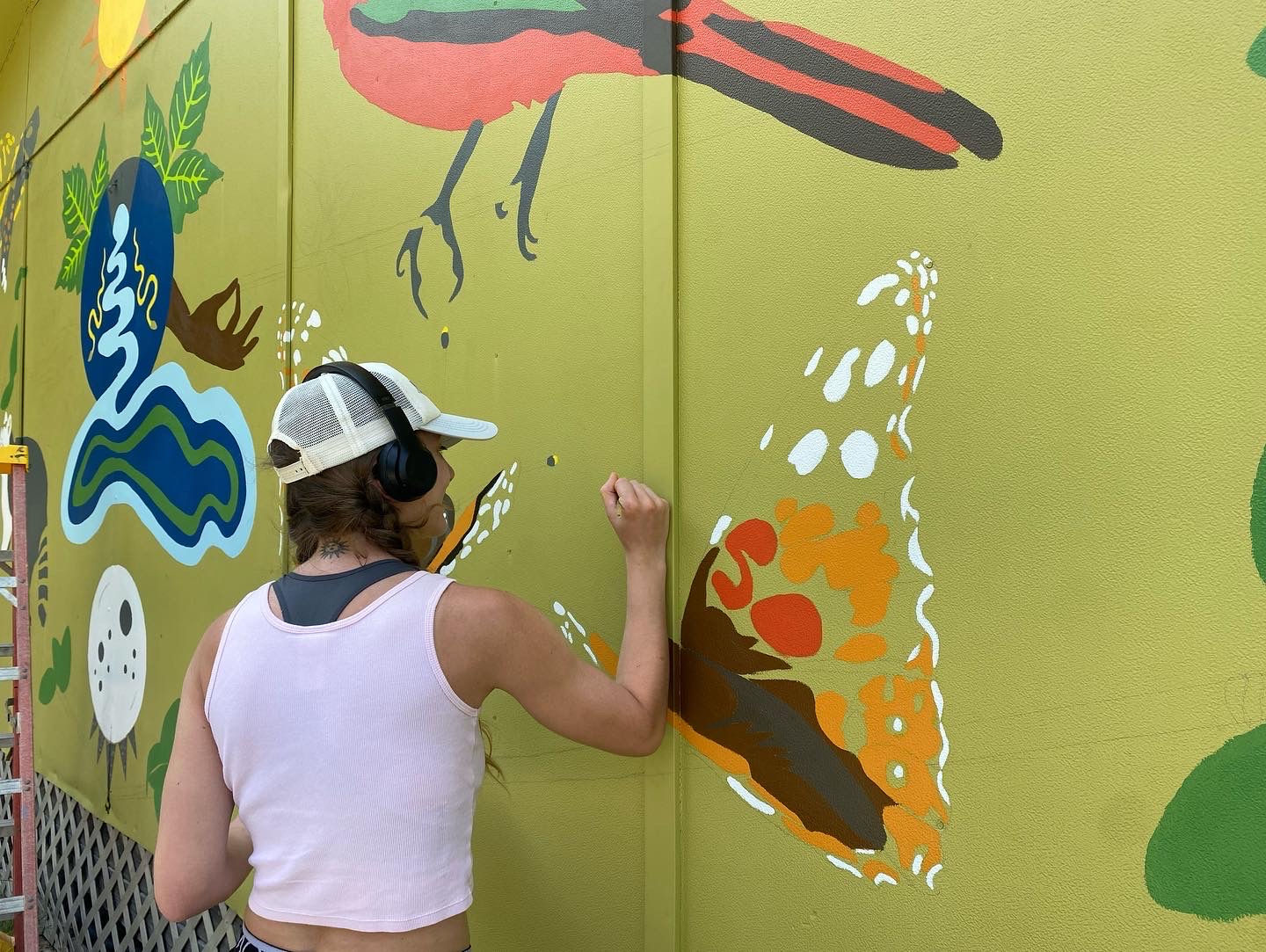 “Eternal Sustentation” portrays the interconnecting web of flora and fauna that LLELA aims to preserve and restore, while also depicting the diversity of the prairie, forest, and wetland habitats that produce an abundance of wildlife. The concept for my design reflects the UNT research office’s function as the center of all research and restoration activities at LLELA. The imagery depicts the movement of this research through a gear and pulley system that contrasts the roles of technology within nature. For more information about the project, visit the City of Lewsiville's Completed Works webpage.